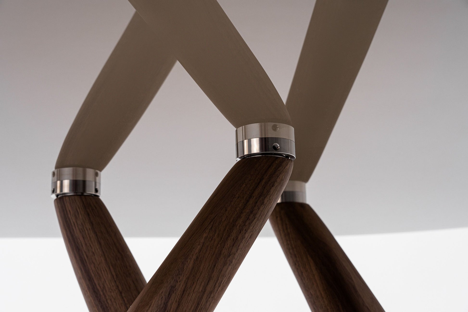 Brown walnut veneer double pedestal base for stability and aesthetic contrast