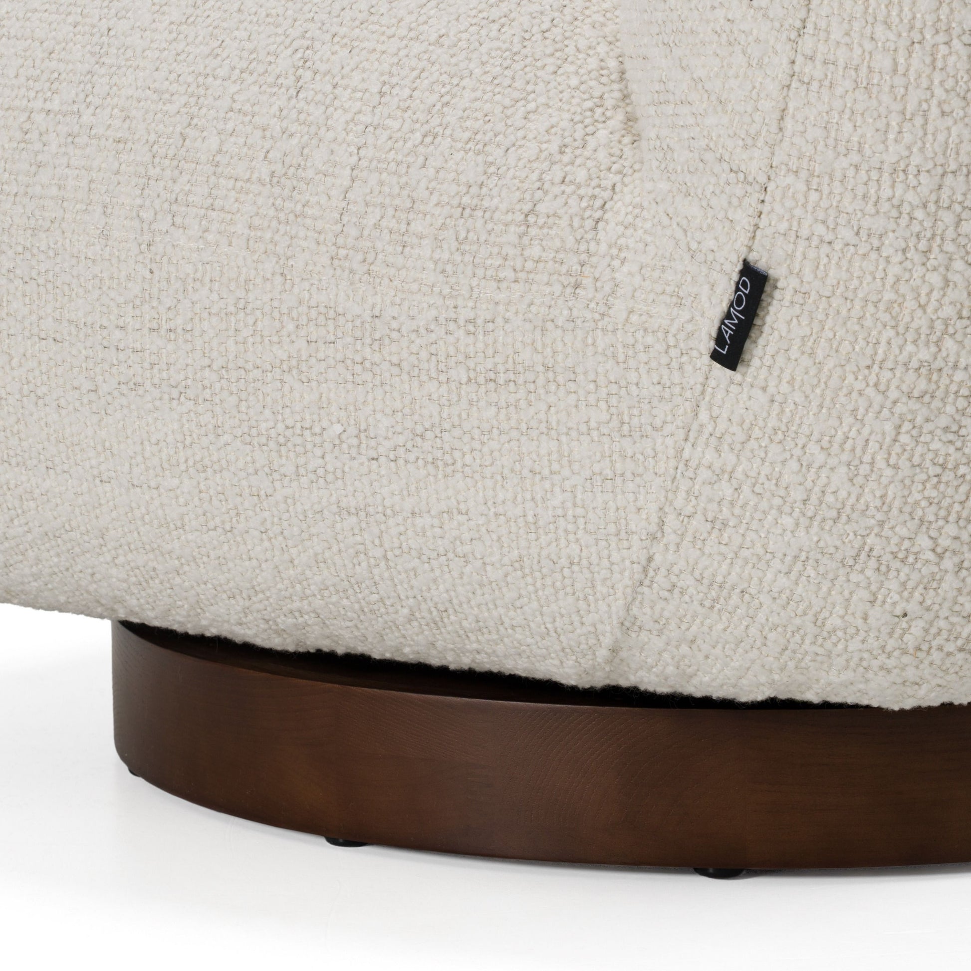 This Renee Accent Chair was intended for the lounging lifestyle and is a comfortable and stylish take on seating. Renee's texturally appealing ivory fabric and continuous cushion are undeniably fashionable, while a low-slung back gives a casual luxury atmosphere. The swivel mechanism make for a fun and adaptable experience.